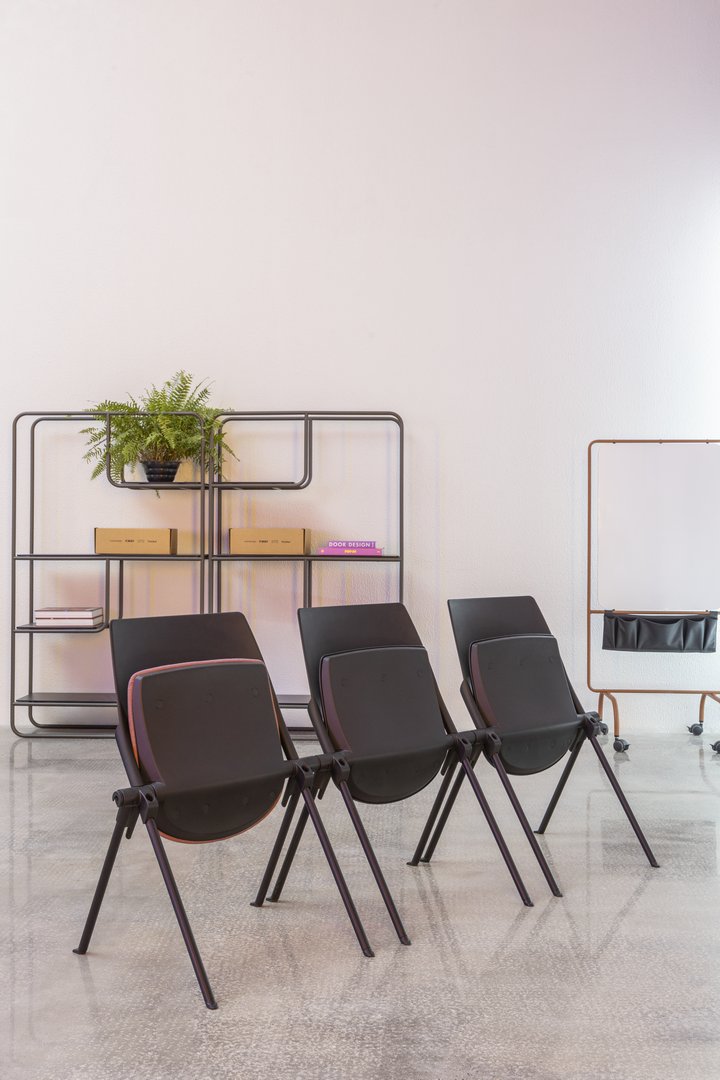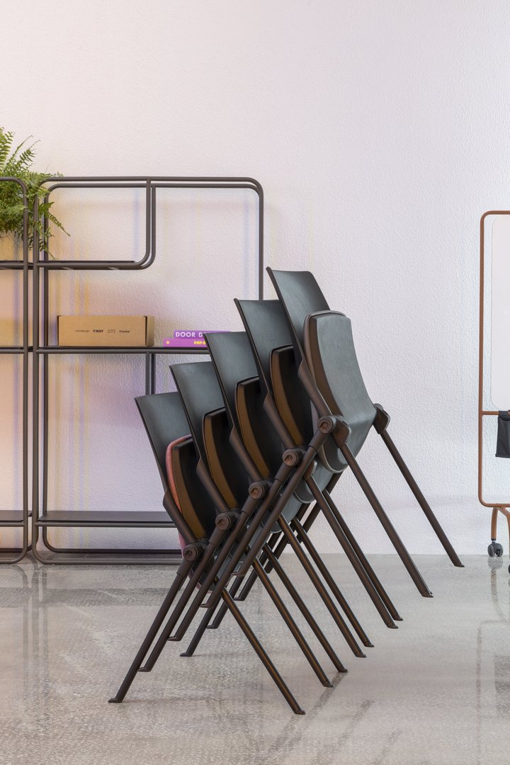 Just es apilable, acoplable y cuenta con un asiento retráctil. Su diseño moderno, ligero y confortable lo hace perfecto para componer ambientes colectivos con extrema practicidad.