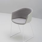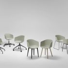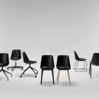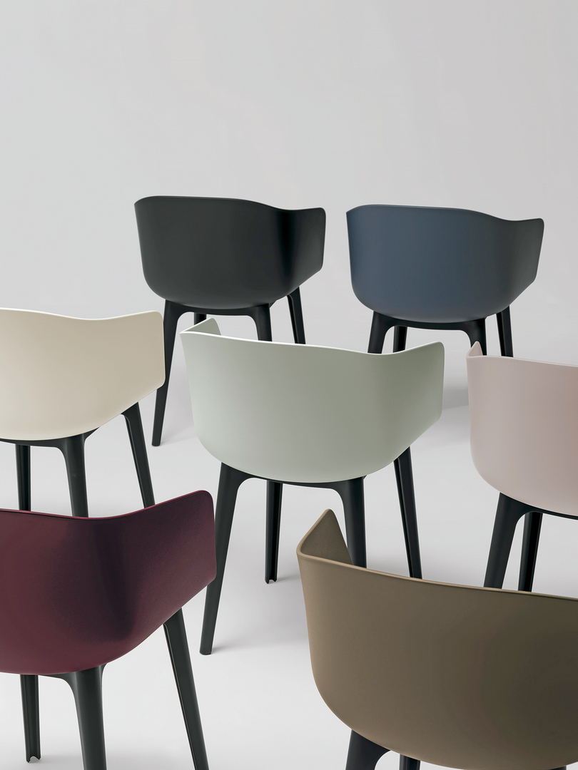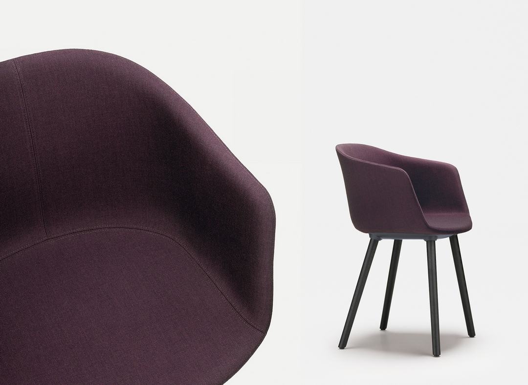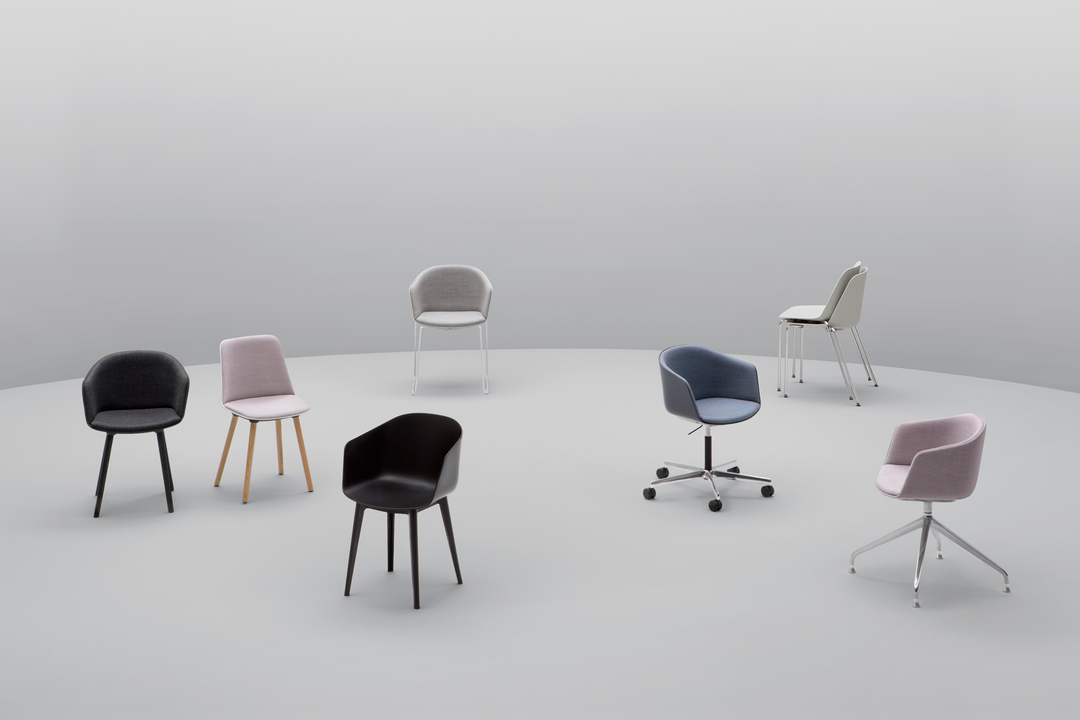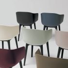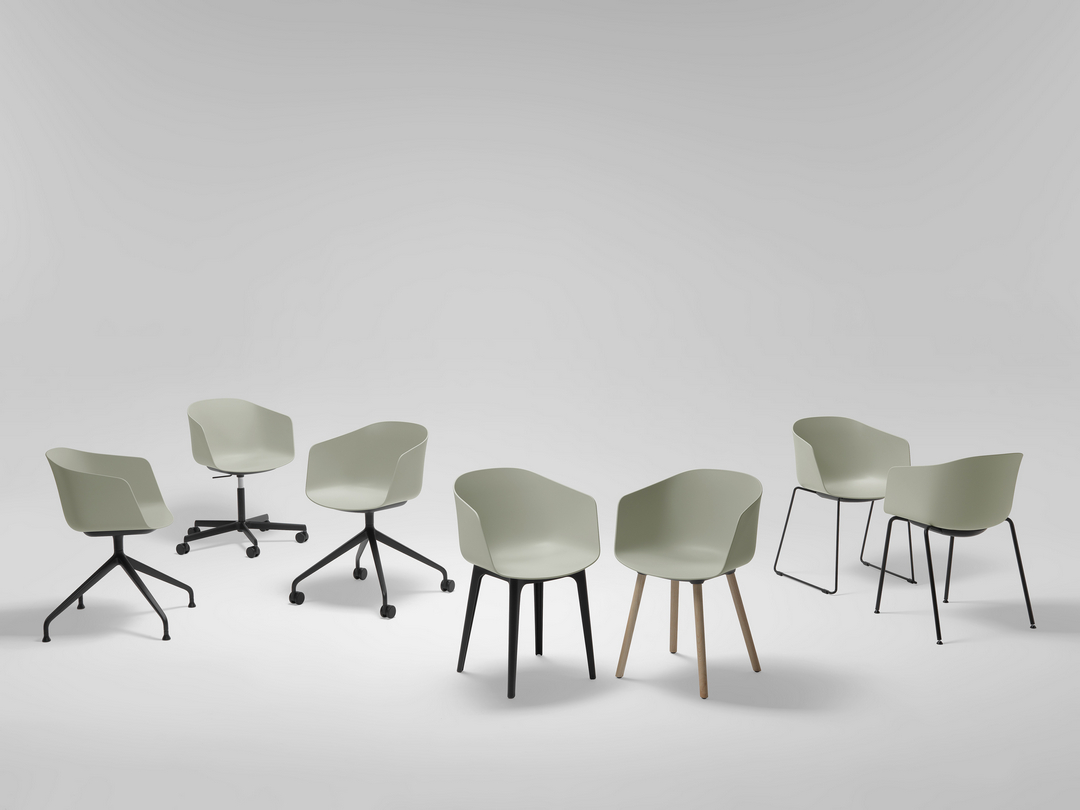 Las relaciones entre los elementos, materiales y revestimientos revelan una actitud de “mix and match”: un sistema de combinaciones coherentes que promueve la identidad y la colaboración en los contextos de uso. Una gama abierta y flexible de sillas y sillones que responde a la demanda de versatilidad, comodidad y sostenibilidad. La colección está fabricada con RE MAX ® el nuevo material 100% PP y madera reciclada.